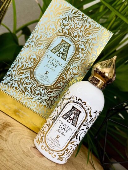 Crystal Love for Her бренду Attar Collection працювала парфумером Nuria Du Chene De Vere. Натхненням для східногурманської композиції стала давня легенда про нещасливе кохання красуні Лейли та арабського поета-бедуїна Кейса, прозваного «Меджнун» («Безумець»). Ароматична історія розповідає про трепетне почуття, розлуку закоханих і трагічний фінал. Це чарівний еліксир кохання, наповнений мріями та кристальною чистотою.